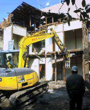 家の前のボロイアパートが重機が入って解体工事を始めた。ちょうど私が留守にしている間に始まった事で、どうにもこうにも仕方がない。こうやってあらためてながめると地震か爆撃にあった戦地のようだな。すごい状態だ。