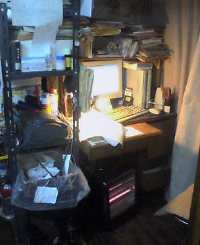 ここが私のコックピットみたいなものか。ごたごたと無秩序にものがある。左の方には家電とファックスがある。しかしまぁ家電などこれからどうなってゆくのかな、ネットで使わない人には無用だよな。携帯がこれだけべんりになればね。