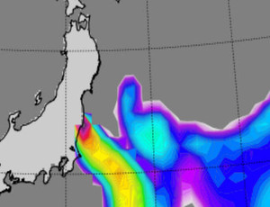 「 明日は、仙台地方は警戒、茨城方向はやや安心というところです。また太平洋を回って、日本の南の方に少し飛散していますから、東海から沖縄に書けて微量ですが、放射線が検出される可能性があります。」
