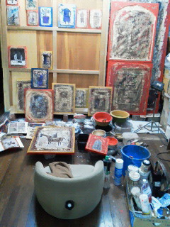 またタイトルもただの絵の説明ではなく、一つの詩になっているところも私にとって好ましいと思うところだ。会場にアトリエの写真が数多く展示されていたけれど、ごたごたした一見無秩序な混沌に見えるところがまたいい。すごく親近感を感じるな。