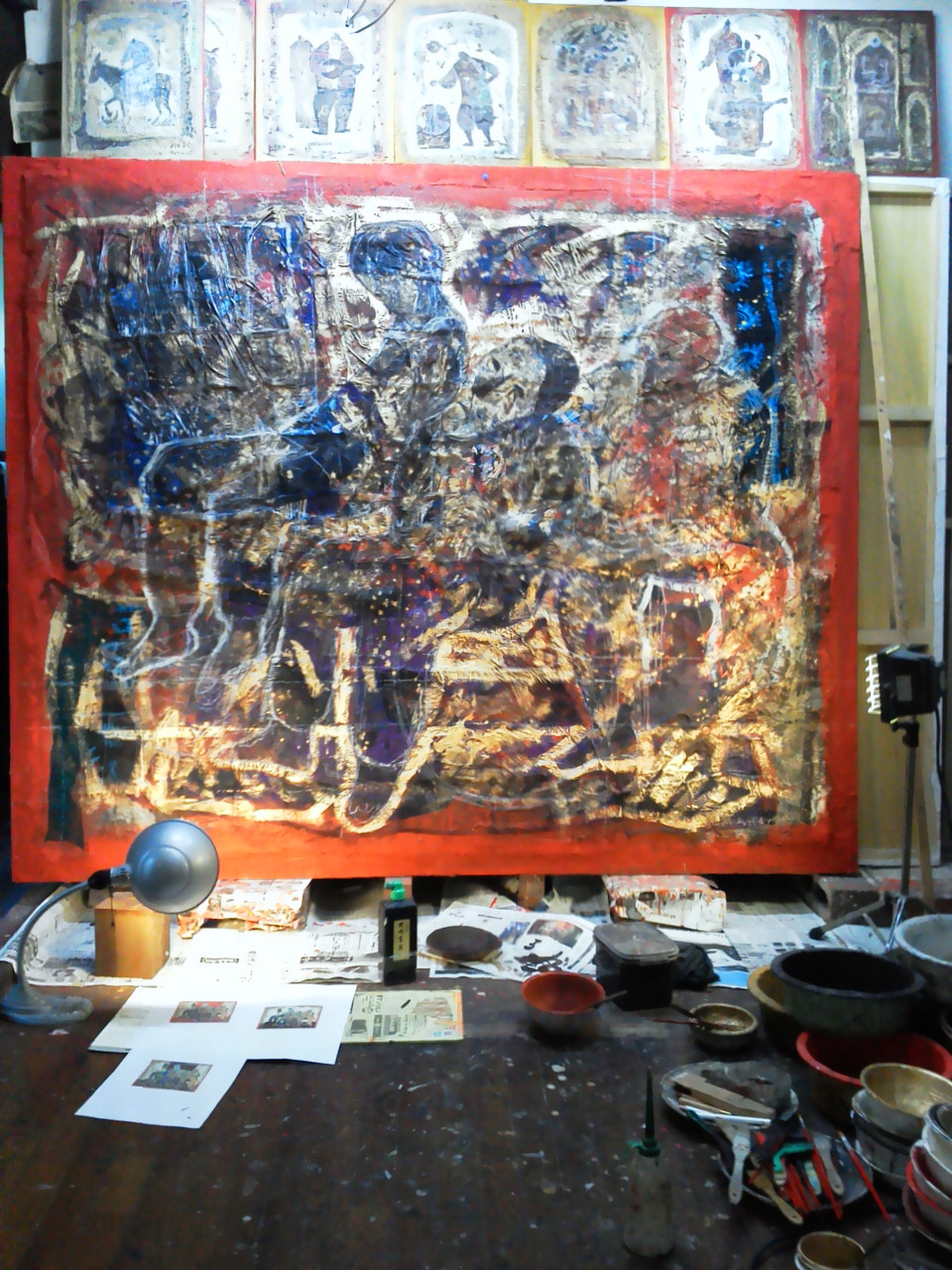 今の制作方法になって、最初の頃は随分と自家製の絵の具を作った。色んな色粉を買ってきてはメジュームを混ぜて絵に具にした。面白いように絵の具の数は増えた。それは画期的な発見のように思った。そりゃそうだ、今までは絵の具は画材店で買うものだと考えて疑わなかったわけだから、それが簡単に色の粉で絵の具を作ることが出来ると知って驚いた。