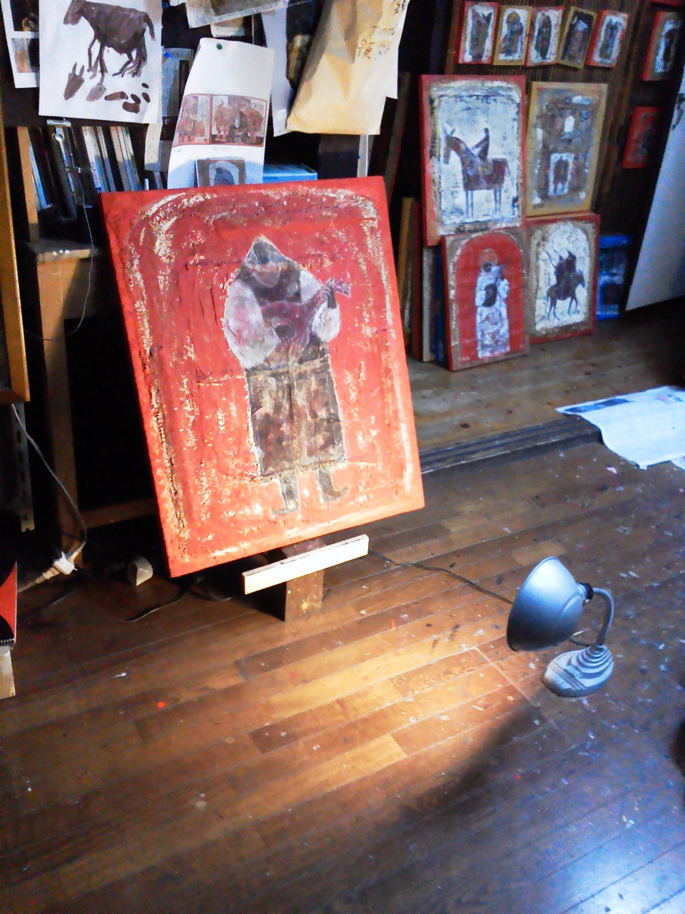 しかし、そういった新しい発見で喜んでいる時は案外つまらない仕事しか出来ていない。絵の具は絵を描く材料でしかないということに気がついた。そして随分と絵の具の数は少なく整理されてきた。少し前に書いたけれど、今は基本的な色はアクリル絵の具を使う。そしてどうしてもアクリル絵の具ではかえ難い、例えば胡粉とか砥粉とか弁柄とかその他土せいの顔料などの絵の具は自分で作ることにしている。