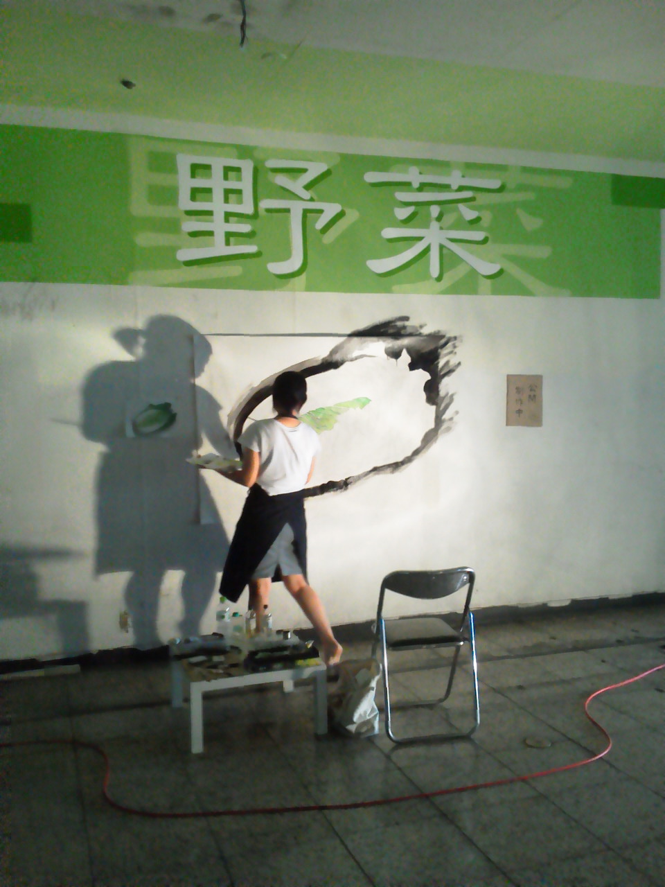 下から二番目は旧スーパーオギノの跡地で行われている現代アートの展示及びパホーマンス。インスタレーション(設置芸術)がほとんどですが、美術館や画廊でやるよりもこういった今にも壊れそうな、風前のともし火のようなだだっ広い空きビルなんかの方が、荒廃したどうにもやるせない感じがして臨場感があっていいように感じた。中ではそんな感じとは裏腹にきゃしゃな若い女の子が、ヘッドホンで音楽を聴きながら『野菜』と書かれたポップのしたで巨大な野菜の絵を描いていた。陽の当たらない廃墟で新鮮そうな野菜の絵を描く若い女の子。これもまた悲しいですが、何か示唆するところはあるように思いました。