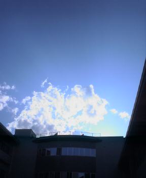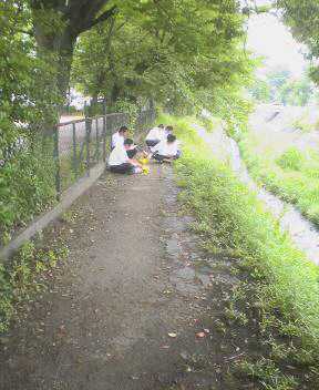 今日は天気が悪いということだったが、朝からけっこういい天気。ということで生徒と風景スケッチにでかける。日差しはもう真夏のよう。ぐんぐんと気温は上昇をつづける。私は涼しい木陰でうつらうつら、生徒にはわからぬように。