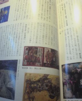 「祝人(再生と祭り) ケンタウロスが角笛を吹いている。そのケンタウロスの雰囲気が、極めて日本的で、北国の鬼のようなイメージが表れているところがおもしろい。布を貼ったりして独特のマットなマチエールの上に、瞽女などを生んだ素朴な東北の民話のようなイメージが表れているところが懐かしい」