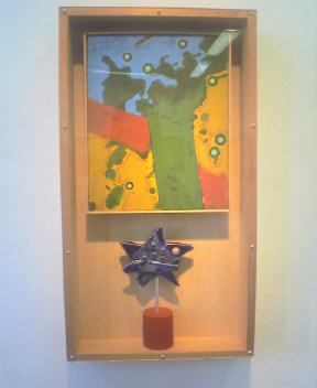もう一つはネットでどこで見つけたのかはっきりは憶えていないのだけれど、退職されてから精力的に個展を開催されている作家の個展を見た。アクリル、ペンキ?と紙などをコラージュした作品で古いヨーロッパの石壁とか化石の動物や人物、花のようなものが、所狭しと展示されていて作者のエネルギーが感じられて面白かった。ただこれは誰にでもいえることなんだが、「どうだ俺を見てみてみろ」という声が大き過ぎて、本来の絵のよさである慎ましやかな内なる声が聞きつらい気がした。自戒をこめて。