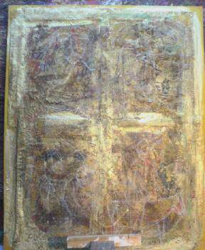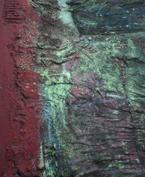 ↑は今描いている作品の一部です。こんな陶器の窯変のような絵肌が好きですな。これはまぁ私が描いているにもかかわらず、私の力ではありません。作ろうとしてもできませんね、私は見つけただけなんだな。ただこれも今だけ存在する美で描いているうちに消えてしまう運命にある。これにこだわっているとつまらない絵になってしまう。