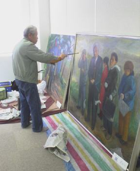 長老のSさんはもう80を超えている。(承諾を得てブログに載せました)若いときに絵をやりたくて近くの研究所でデッサンも習っていた。家の都合で一時筆を休めていたけれど、退職して自由になって今は好きな絵を描くことが嬉しくて仕方ないらしい。ほぼ一ヶ月に一度顔を見せるのだが、100号の絵を赤帽さんに運搬を頼んで持ってくる。ちょっと趣味でやりましたというのではここまで描けない。その絵に対するひたむきな態度、80を越えても次から次と表現したいことが湧き上がってくるその情熱は見ていても頭が下がります。・・会の会員とか・・賞受賞などという経歴ばかりを誇らしげに誇示する先生がたよりも何倍も輝いてみえます。自戒を込めて。