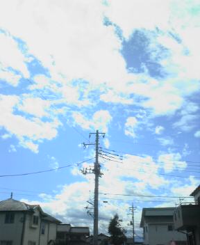午後からは台風一過の上天気で、毎度のことだが青空が抜けるようでそれだけでもチョビット幸せな気分になる。雲が飛ぶように流れていた。明日はフェーン現象で暑いかもしれない。