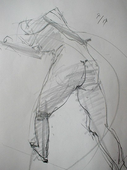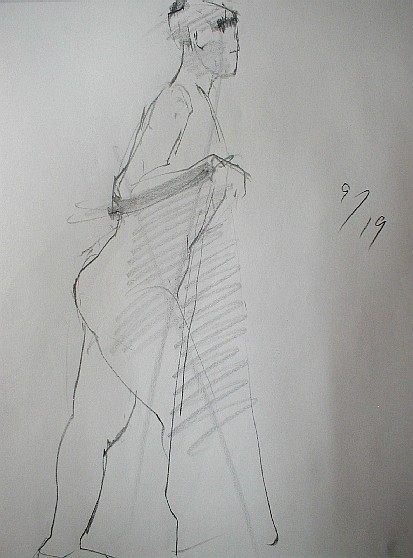 クロッキーといえど絵画の大道に通じているところがあって、いつも思うのは小手先の線はどんなに上手くかけていてもいいとは思わない。精神がたっていて生き生きとした大きな線がひけた時はすがすがしい気分になる。それは何だろう、剣豪の一振りとか、禅僧の一筆にたいなものかな。ためらいがないおおらかな線がひけた時は気分のいいものだ。そんなのは一回のクロッキー会でも一度あるかないかの確立だ。