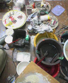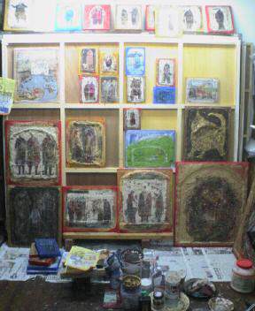 ミクストメディアはある意味で異なる材質のコラージュだと思う。紙だけではなく布や木、土、その他親水性のあるものならあらゆるものが画材として画面の中に持ち込むことが出来る。絵の具にしても一番元のところまで下がって「絵の具は色の粉だ」というところまで還元できる。そうやって私は多くの新しい絵の具を手に入れた。