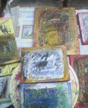 土曜日から県内の平面作家8人のグループ展が始まる。今年の作品は残念ながら大阪展に巡回中なので、昨年の作品を引っ張り出してきた。久しぶりに見て○と思う作品と、×と思う作品がある。自分の目が他人の目になっている、他の人が見て感じる第一印象と同じなんだと思う。その時にだめだと思った作品は×だろう。この「ながい旅」は◎だった。よかった。