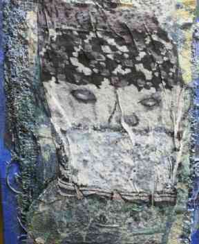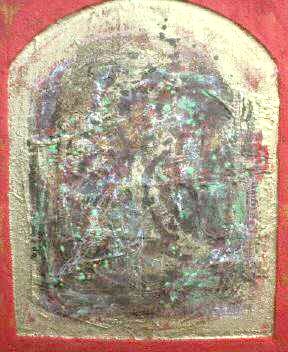 地塗りが終わって、布や土や絵の具を何度か重ねた状態。まだ何を描くのか決まっていない。しかしそうは言いながら、ぼんやりと敦煌の莫高窟やバーミヤンの壁画などの仏や菩薩、もう少し西に出かけてキリスト教のイコンやフレスコ画などがいいなぁと想っている。人が動物から「にんげん」になって、空いてしまった心の内側を埋めるには、どうしても「おおいなるもの」の存在が欠かせない。それがアラーの神なのかイスラムの神なのか古代ギリシャの神々なのか、仏陀や八百万の神なのか知らない。何かそんなものが出てこないか待ち構えている。